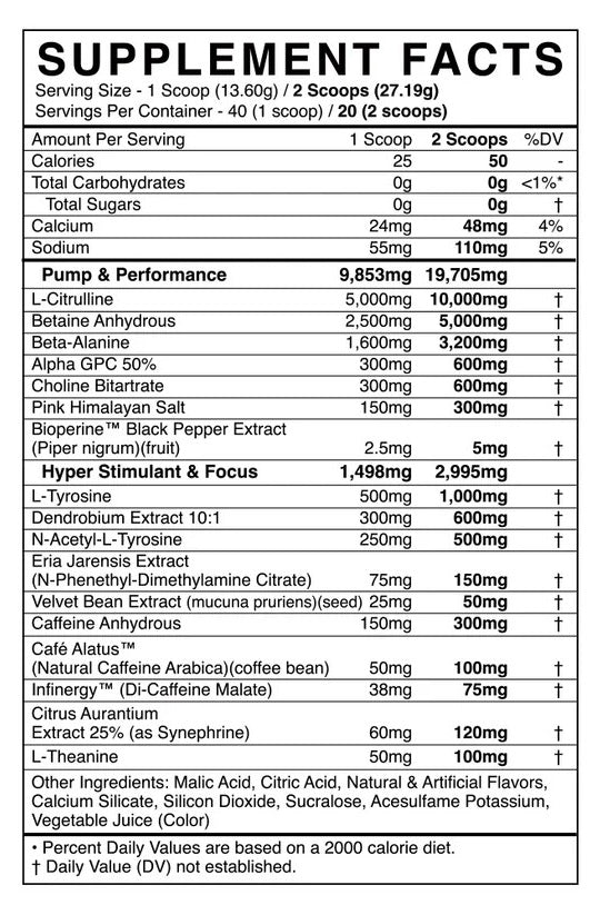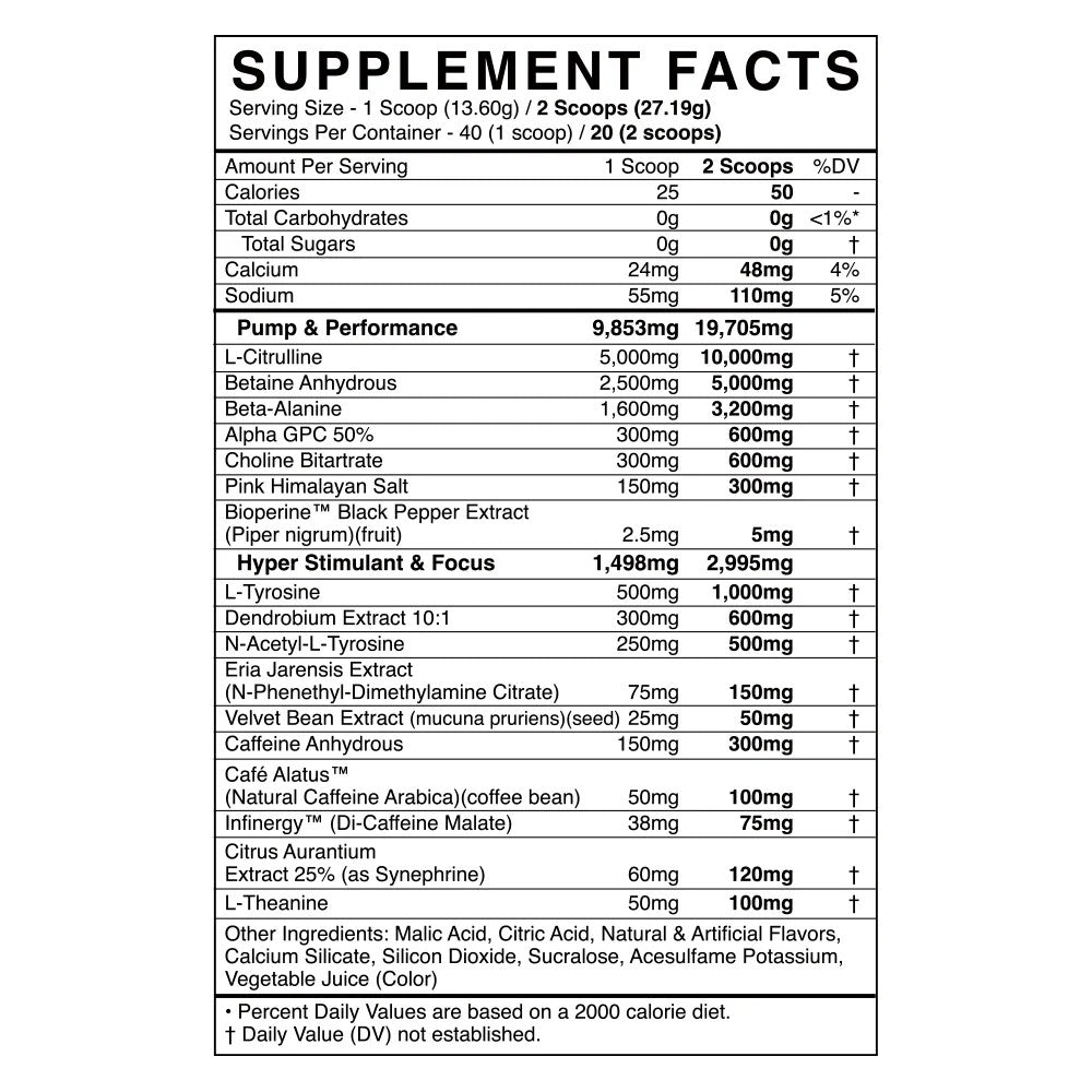 Recommended Dosage: Take 1 scoop 20-30 minutes before your workout.