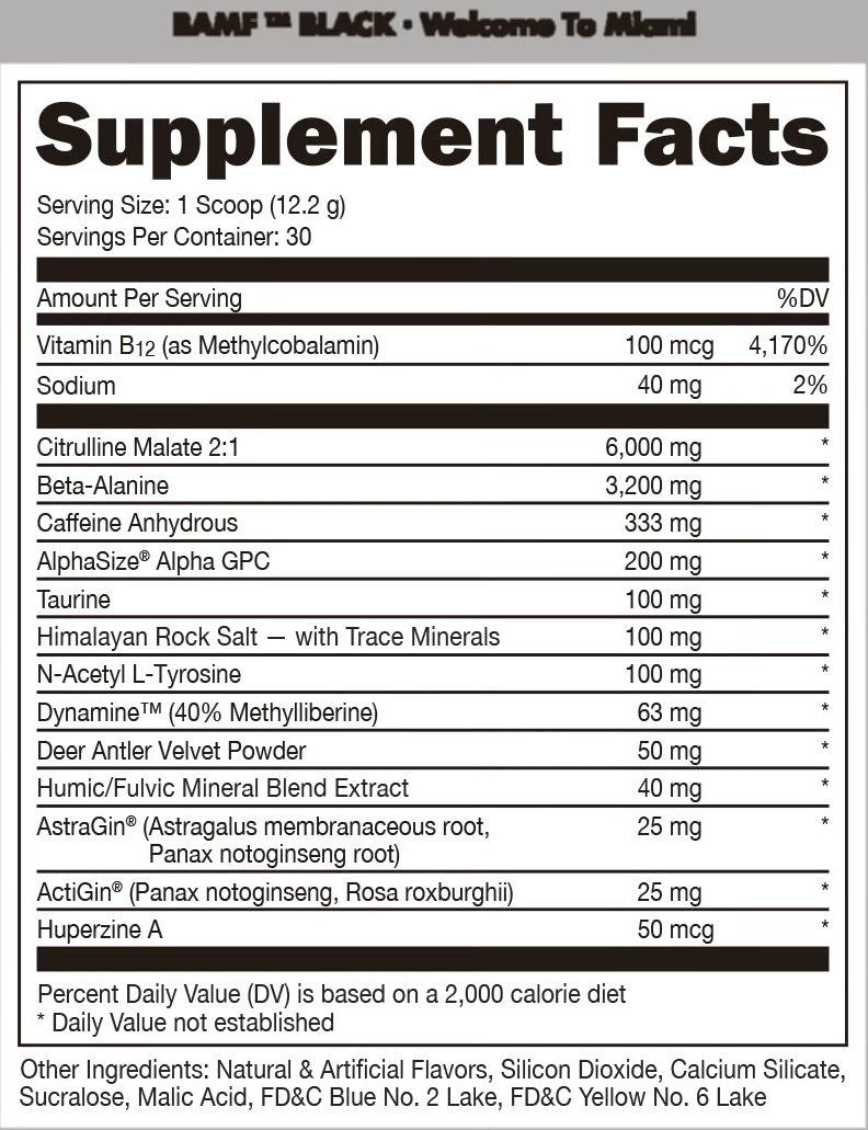 Suggested Use: Mix one scoop of BAMF Black with 6-8 ounces of water 20-30 minutes before your workout.