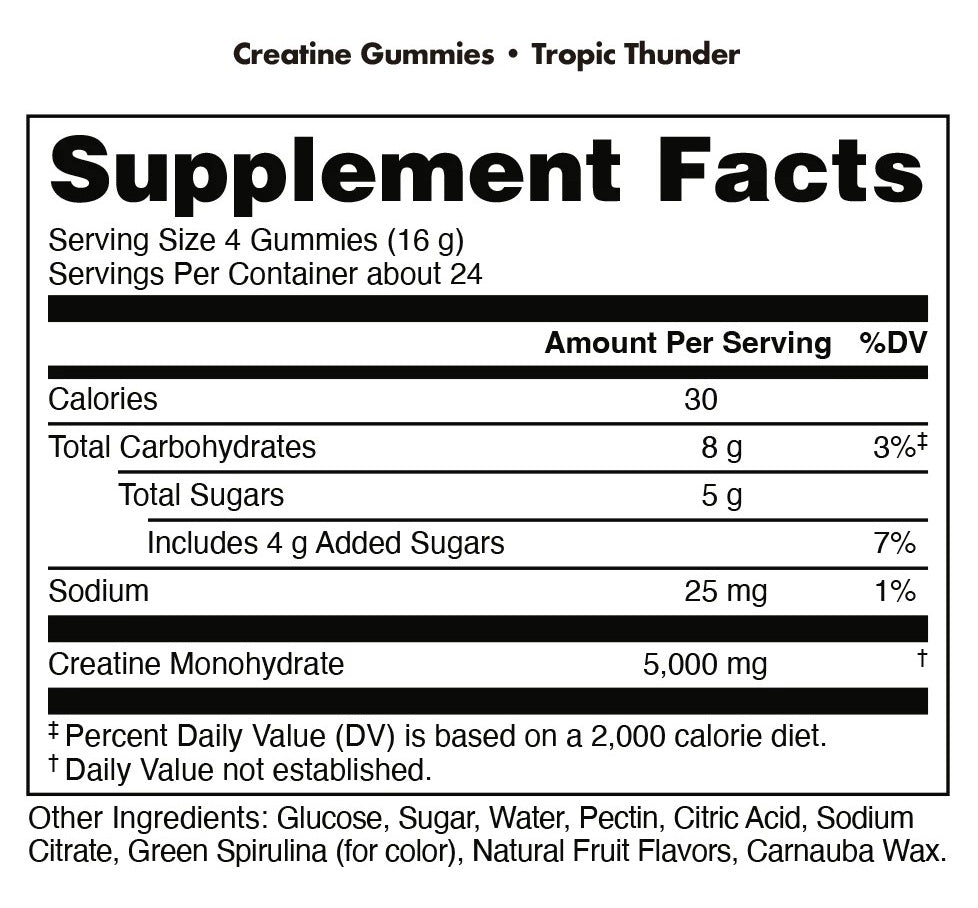 Suggested Use: Take 4 gummies (16g) per serving. Each bag contains approximately 24 servings. Take daily for optimal muscle-building and recovery benefits.