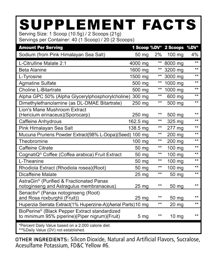 Important Note: Skull is a high-stimulant pre-workout. It's crucial to start with a lower dose and gradually increase as needed to assess your tolerance. If you're new to pre-workouts or have a low stimulant tolerance, Skull is not recommended. Always consult with your doctor before starting any new supplement regimen.
