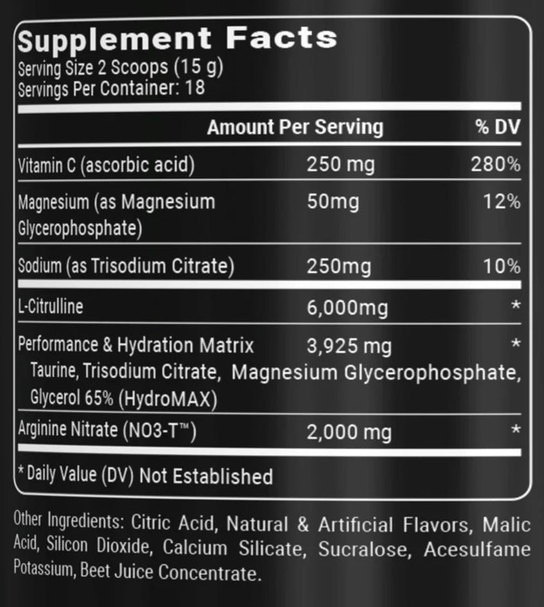 Recommended Dosage: For users weighing 160 lbs or less, consume 1 scoop mixed in 8 oz of water 30 minutes prior to training. For users over 160 lbs. consume 1-2 scoops mixed in 8-12 oz of water 30 minutes prior to training.