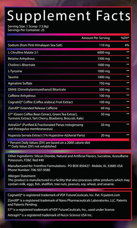 SUGGESTED USE: Mix one (1) scoop with 8–10 oz of cold water and consume 20–30 minutes before your training session. Because this formula is nootropic-heavy and highly potent, beginners should start with a half-scoop to assess their mental and physical tolerance. Do not exceed one scoop in a 24-hour period.