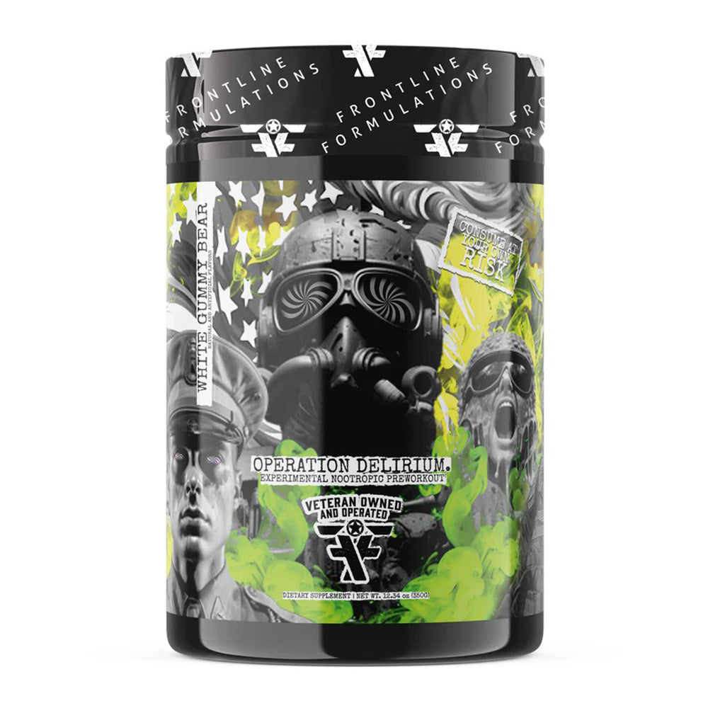 Operation Delirium is marketed as a "Military-Grade Experimental Formula." Unlike standard pre-workouts that focus purely on high stimulants, Delirium is engineered to prioritize mental intensity and cognitive performance. It is designed for athletes and tactical professionals who require extreme focus, faster reaction times, and a superior mind-muscle connection without the overwhelming jitters of high-caffeine formulas.