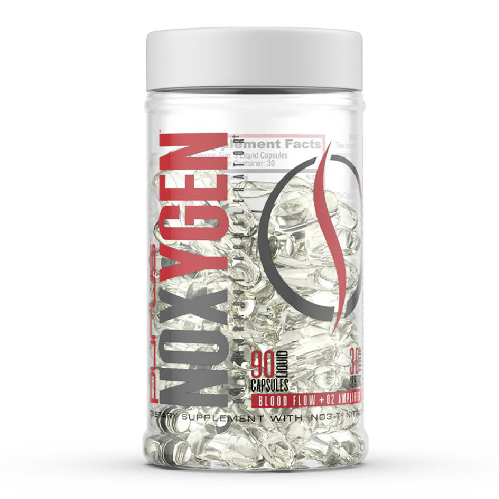Purus Labs NOXygen Liquid Capsules are a stimulant-free, unflavored supplement additive designed to enhance athletic performance by increasing nitric oxide levels, promoting vasodilation, and supporting expanded strength, endurance, and hydration.