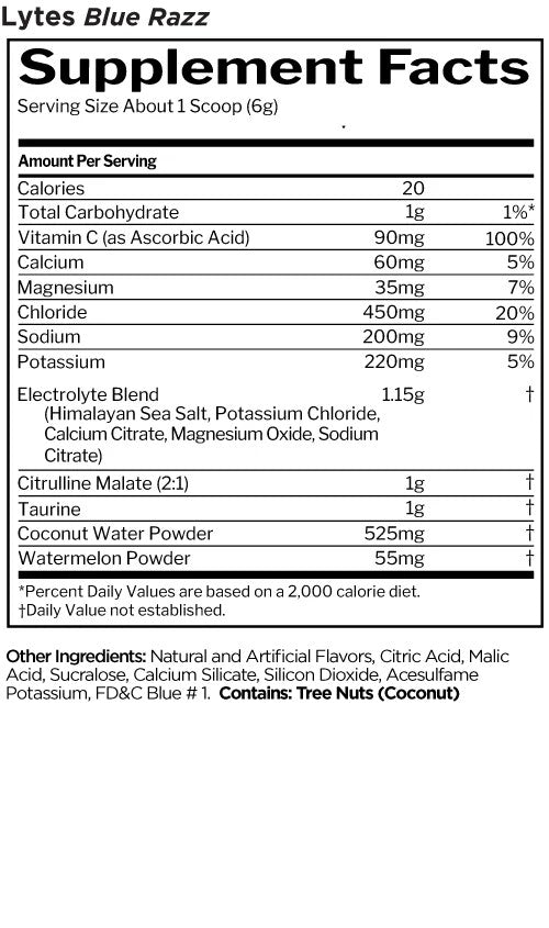 Dosage: Mix one scoop with 8-12oz of cold water and consume before, during, or after exercise.