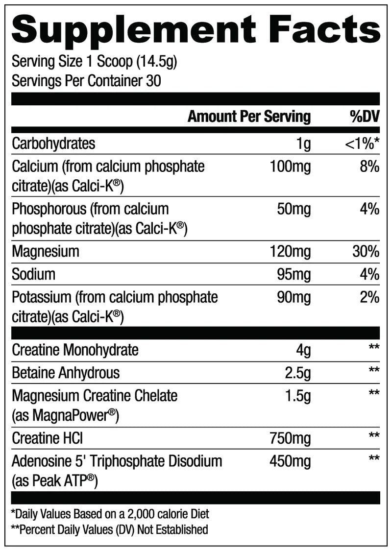 Suggested Use: Mix 1 scoop of loaded creatine with 10-12oz of water or your favorite beverage. For best results, consume daily on both training and non-training days with plenty of water. Vary amount of liquid to taste.