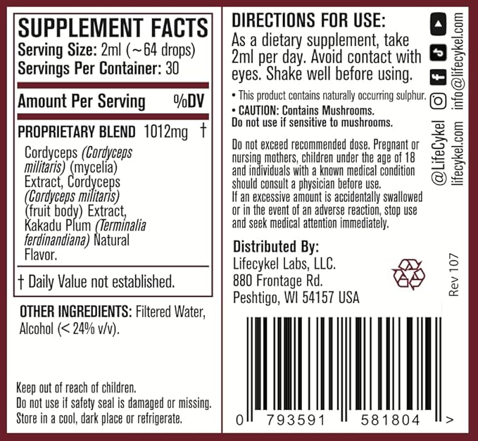 - Full Spectrum: LifeCykel's extracts utilize both the fruiting bodies and mycelium of the mushrooms, capturing a wider range of bioactive compounds for maximum benefit.