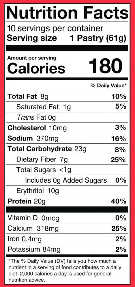 High Protein: Each pastry packs a whopping 20 grams of protein, making it a great option for fueling your body after a workout or for a satisfying snack.