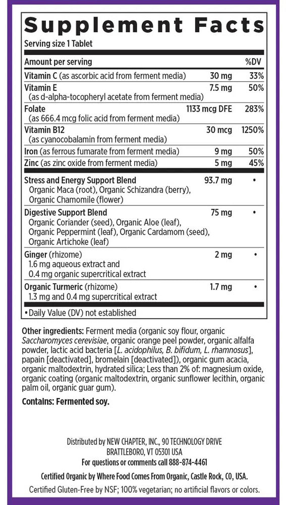 New Chapter Fermented Iron Complex is a daily iron supplement formulated to support blood health, natural energy production, and iron levels using whole-food fermented ingredients for enhanced absorption and easier digestion. It combines iron with blood-bonding vitamins, minerals, and herbal extracts to promote hemoglobin and myoglobin formation and help reduce fatigue associated with low iron status. Fermented Iron Complex is gentle on the stomach and can be taken even on an empty stomach.