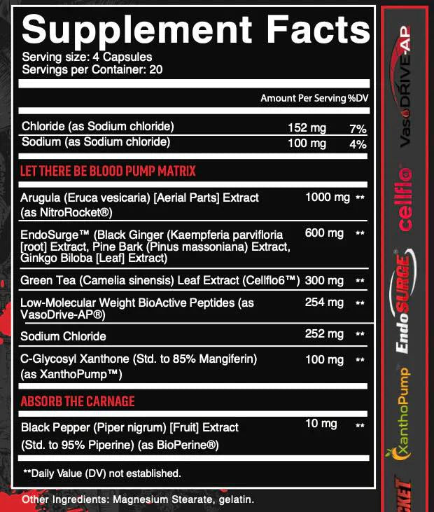 Suggested Use: take 1 serving (4 capsules), 30 minutes before training.