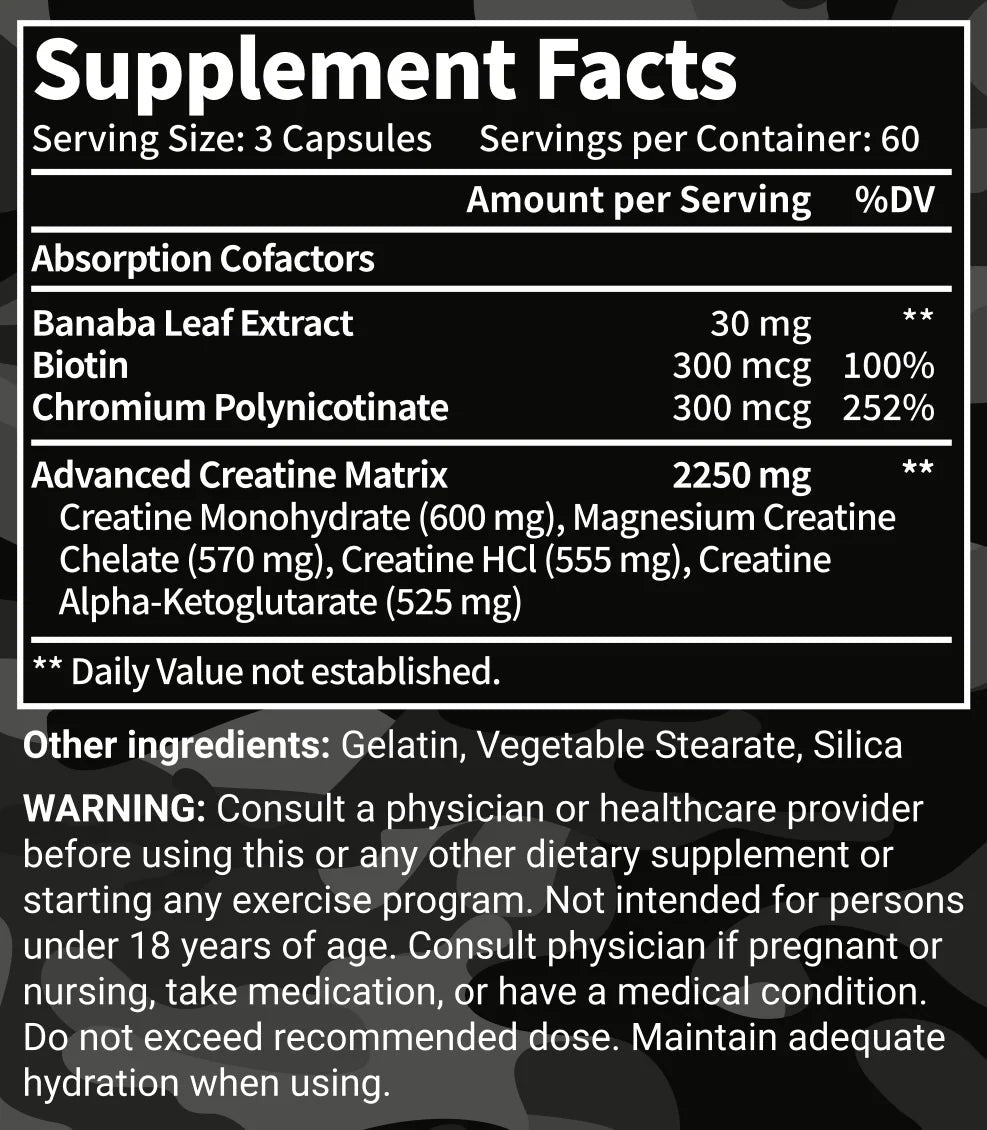 CreHD uses a multi-creatine matrix rather than a single form. While specific quantities are listed on the product label, the key creatine forms included are: