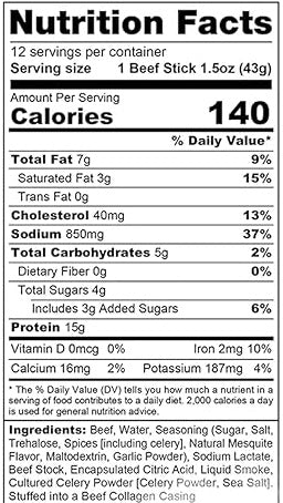 Portion Size: Each beef stick typically weighs 1.5 ounces and provides around 15 grams of protein.